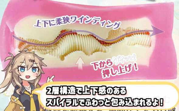 ふわトロ素材なのに思ったより刺激がはっきりしていて特に亀頭あたりにはそこそこ満足感のある刺激をふわギザが与えてくれるよ!これは刺激が強いって意味じゃなくてふわトロ素材なのになぜ?!という驚きからくる感想だね!